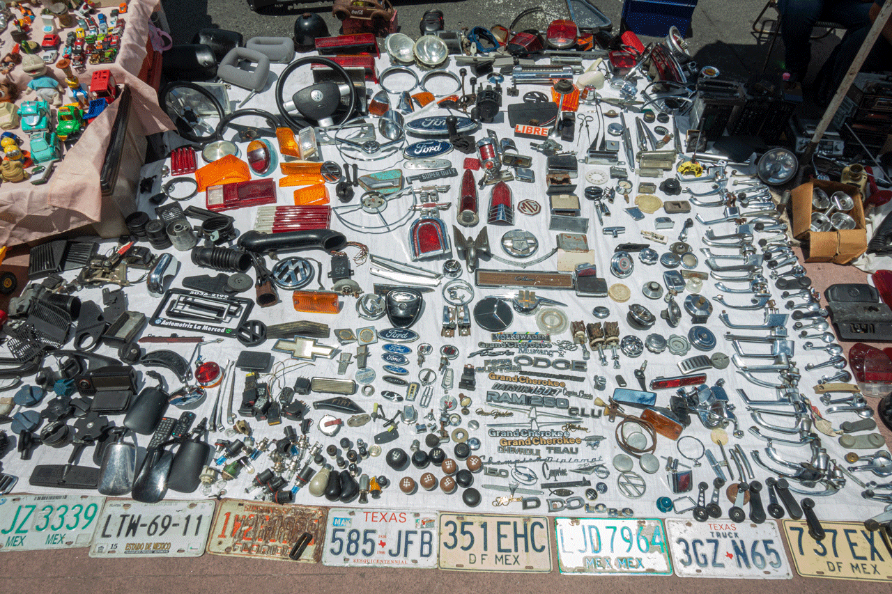 Este bazar es también el lugar para comprar y vender piezas y refacciones de automóviles que es difícil encontrar o que simplemente ya nos se fabrican.