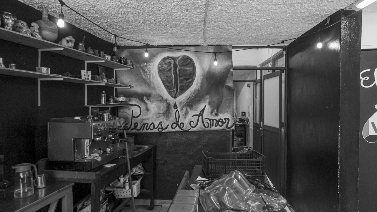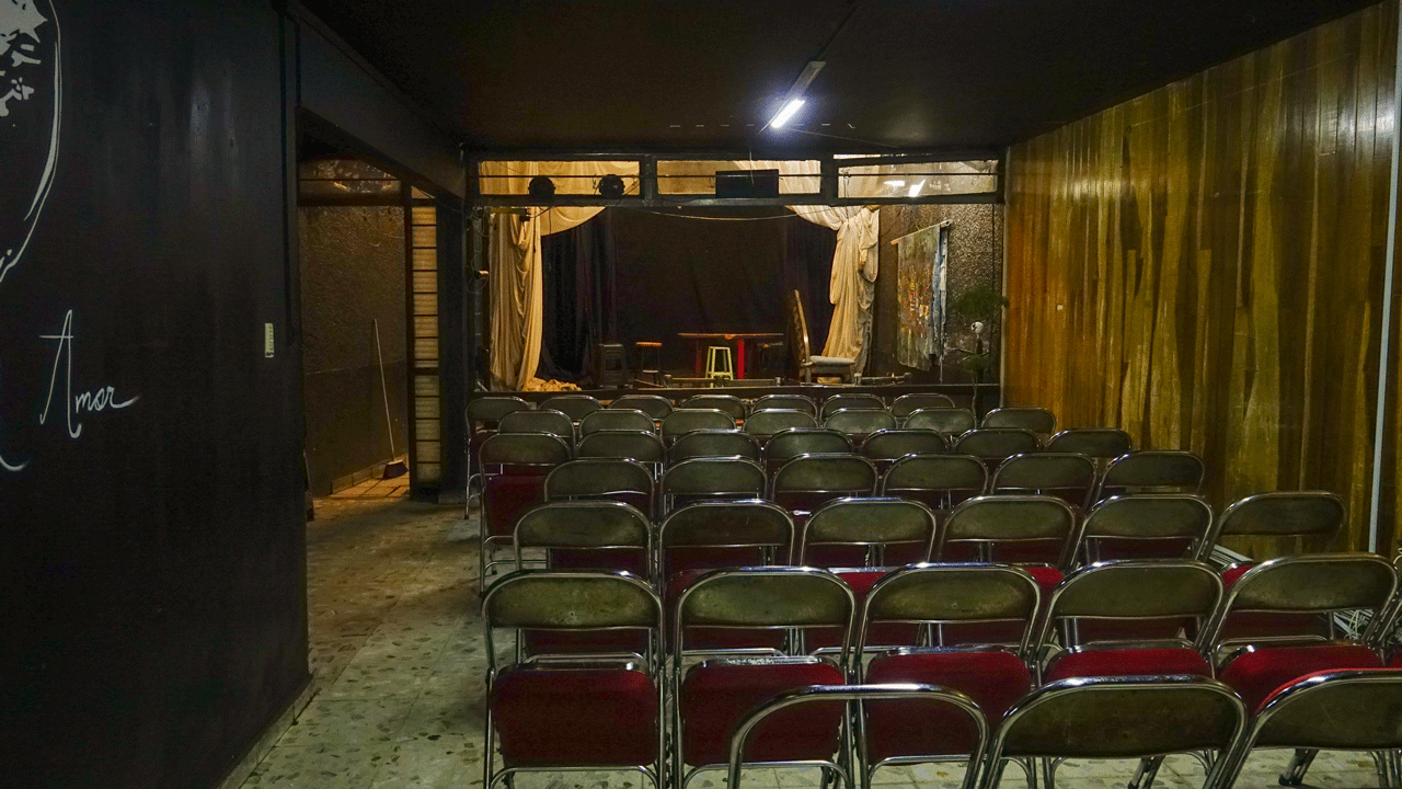 Entonces llego aquí a Coyoacán y mi hermano es catador de café, de los mejores del mundo, Jorge Luis Bernal. Y pues abrimos la cafetería y yo, siempre he montado un teatro para hacer los ensayos que requiero para las obras que monto, que escribo o que dirijo. Y aquí, pues, vi un espacio bonito para hacer los ensayos.